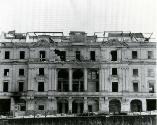The ruïns of the old and new Kanzlei after the war. The street in front of it is the Wilhelmstrasse. Across the street is the Wilhelmplatz. (picture: After The Battle, 1988)