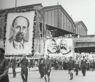 The crossing Friedrichstrasse/Unter den Linden in 1947, facing the other side of the Friedrichstrasse: the side of S-