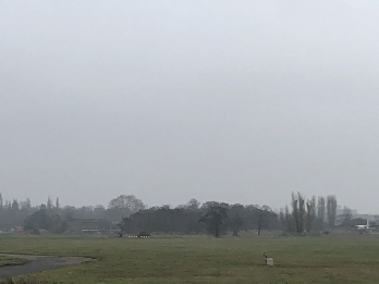 The tribune that’s on the picture of the mass meetig stood approximately on the location where the information stands are on the left picture. To see the location of the old airport you have to turn around. The location is where the trees are in the picture on the right. (pictures: the Hitlerpages, 2019)