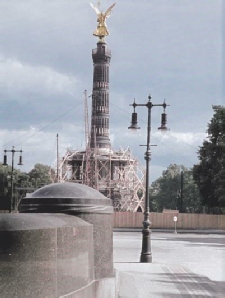 From left to right: The Siegessäule on the Königsplatz in 1930 (Berlin, Damals und Heute, 2009), the pillar under construction (picture: Reichshauptstadt Berlin, 2009) and the Siegessäule today. Albert Speer added an extra part to the pillar, as you can see on the picture on the right. (picture: the Hitlerpages, 2006)