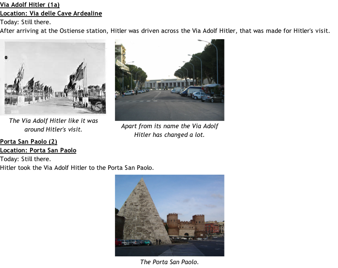 Rome: 1. Roma Ostiense 1a. Via A. Hitler 2. Porta San Paolo 3. Palazzo delle Posta 4. Lombardi’s Fountain 5. Circo Massimo 6. Porta Capena 7. Via Capo d’Africa 8. Piazza del Colosseo 9. Basillica di Massenzio 10. Capitole Hill 11. Monumento Nazionale Vittorio Emanuelle II 12. Palazzo Venetia 13. Pantheon 14. Palazzo del Querinale 15. Civitavecchia 16. Conte di Cavour, Napoli