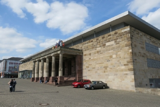 Hitler held his speech in front of the Orangerie on the Karlwiese. Behind the Orangerie, on the Friedrichsplatz hill, is the Staatstheater.